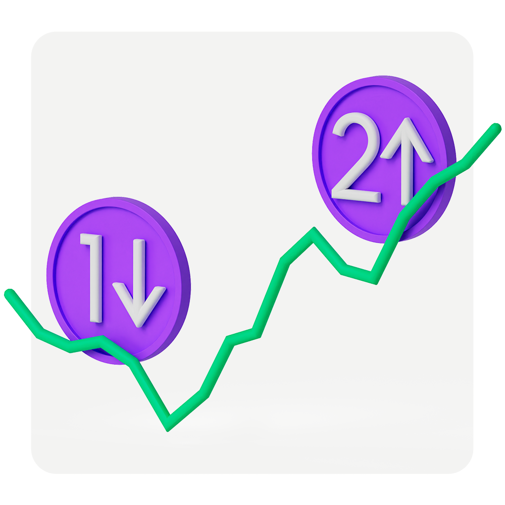 Independently trade in the crypto market if prices go up or down. You can open a short position if you think crypto prices will go down or a long position if you expect prices to rise.